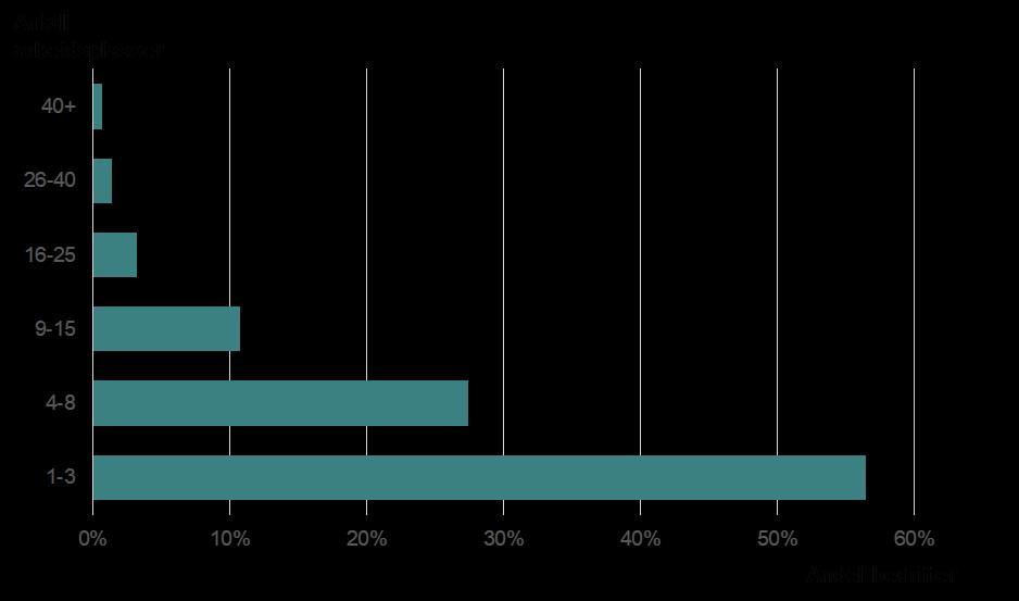 Grafen under viser antall leietakere sortert etter antall arbeidsplasser leid.