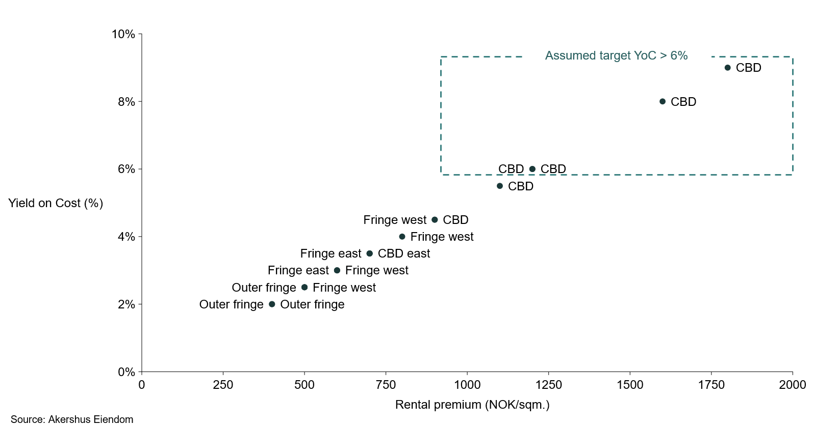 Figure 4: Rental premium and yield-on-cost, Oslo