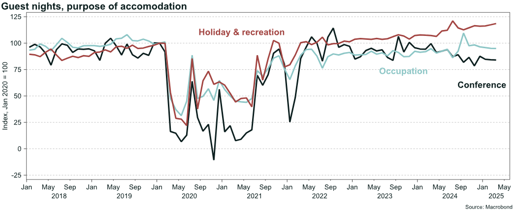 However, on a national level, business-related stays – including those connected to conferences and corporate travel – have declined somewhat compared to the pre-pandemic period. Conversely, leisure and holiday stays have continued to rise, with occupancy in this segment now around 20 per cent higher than before the pandemic. According to Statistics Norway (SSB), many Norwegians discovered the appeal of domestic travel during the pandemic, and this increased interest in holidaying within Norway has persisted.