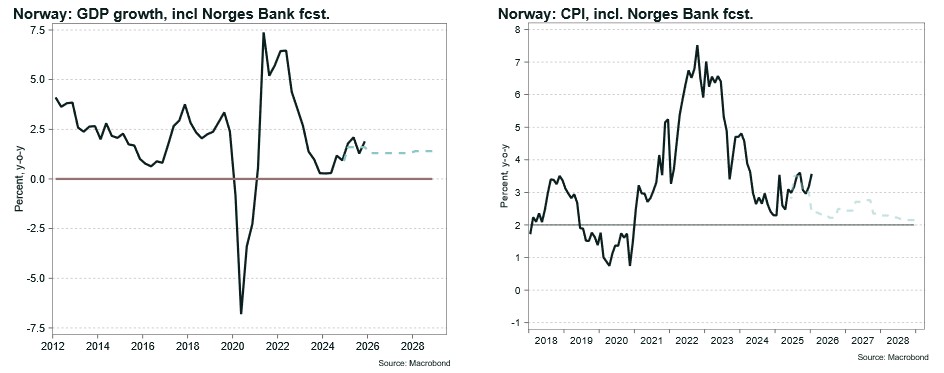 Norges Bank’s interest rate forecast from December implies three policy rate cuts over the next three years. The central bank has also indicated that it envisages cutting rates once or twice in 2026. However, recent data on GDP growth and inflation have led market participants to believe that no rate cuts will materialise this year after all.