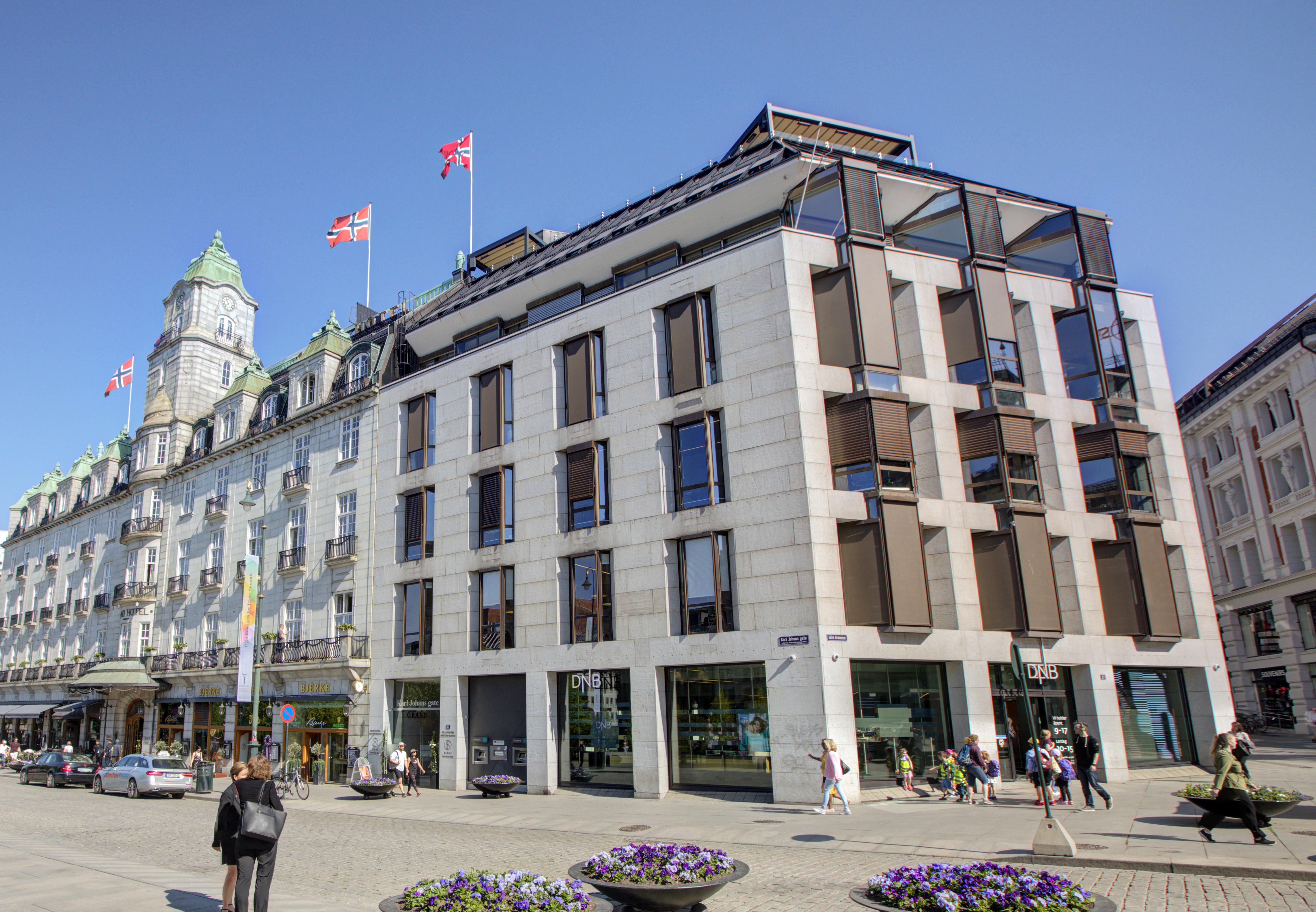 DNB disponerer første og andre etasje, mens de øvre etasjene huser Grand Hotels møterom, Eight Rooftop Bar og Artesias spa.