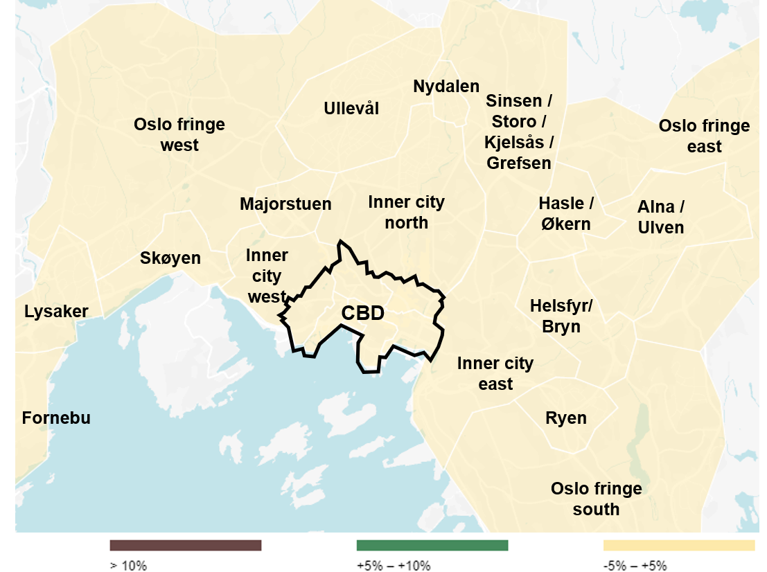 Our estimate for 10-15% nominal rental growth in the CBD for 2019 is maintained, and we expect further CBD rental growth of 5-10% in 2020. Our 2019 forecast for Lysaker, Skøyen and Nydalen is 5-10% rental growth, and as of October, we also raise or expectations for Helsfyr-Bryn to this level. We expect no significant change in the remaining areas of Oslo. For 2020, our expectations are for somewhat slower growth in rental levels due to the lower GDP growth forecasted. Low vacancy is still likely to enable rental growth above CPI.