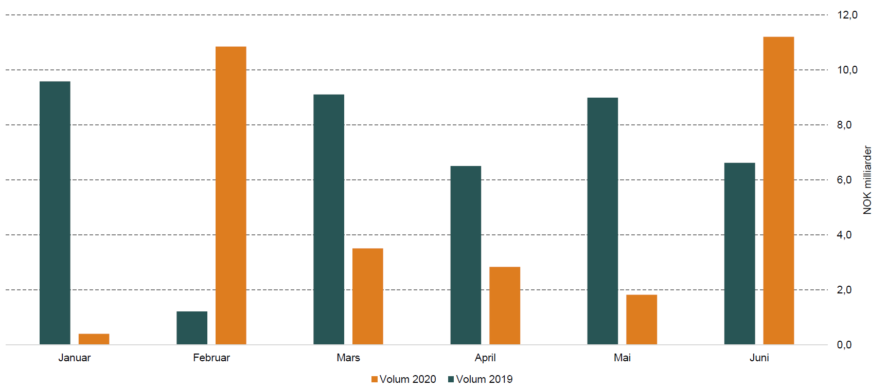 Etter noen måneder med turbulens i samfunnet og økonomien generelt, har prognoser og aktivitetsnivå stabilisert seg noe i juni. Dette har påvirket transaksjonsmarkedet positivt, for aktiviteten i juni har vært merkbart høyere enn de foregående måneder. Flere eiendommer er solgt eller er i bud-aksept, og både antall prosesser, prisnivå og stemningen hos investorene tyder på at markedet har oppnådd noe resistens, om ikke helt immunitet enda, mot effektene av pandemien. Fallende lånemarginer gjør oss optimistiske for videre aktivitet i andre halvår.